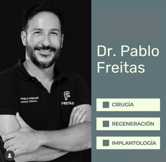 Soy el Dr. Pablo Freitas Gómez, odontólogo especializado en implantología y cirugía oral, con más de 13 años de experiencia y más de 3.000 pacientes tratados. Mi formación académica se ha desarrollado en prestigiosas instituciones como la Universidad Cardenal Herrera y la Universidad de Valencia, donde he obtenido múltiples títulos de especialización en implantología avanzada, regeneración ósea guiada y periodoncia aplicada a la implantología.